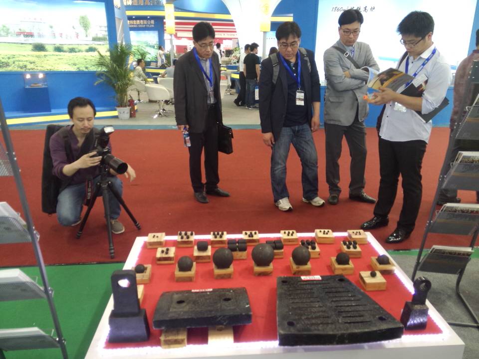 參展前期開源耐磨公司精心組織、周密籌劃,力求將此次展會的效果發揮到最大。在展品安排上,為突出開源耐磨實力突出,產品規格齊全,我們依次展出了直徑10毫米到130毫米的高鉻合金鋼球、高鉻合金鋼段、合金襯板、耐磨錘頭等系列產品。并對每一種產品貼上標簽,做出說明,以更加方便客戶的瀏覽、觀看。產品分類、擺放一目了然,從產品展出效果上看,無疑是眾多同行中做得最好的,引來無數商家駐足拍照。