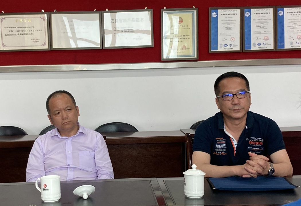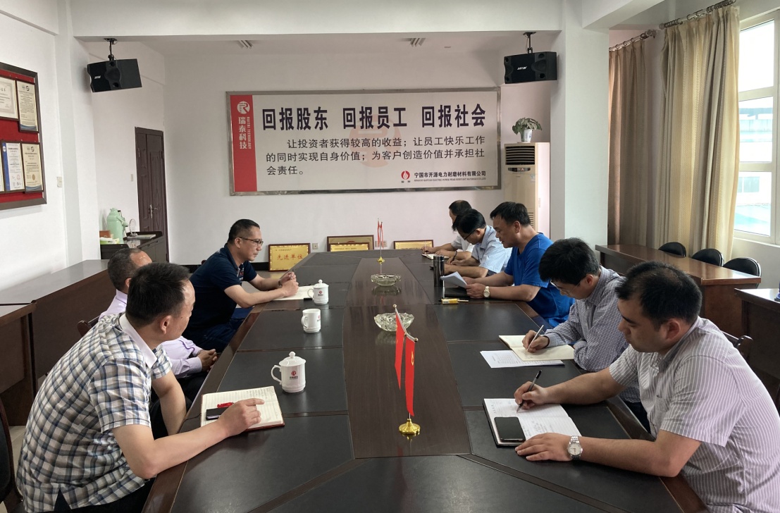 5月15日下午,瑞泰科技黨委書記、董事長曾大凡,瑞泰科技總經(jīng)理陳海山蒞臨開源耐磨檢查指導工作,并召開了座談會,開源耐磨經(jīng)營班子成員、總經(jīng)理助理參加會議。